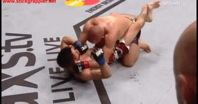 Here the full lethality of the kimura is demonstrated - the victim tries to roll out of it, but Frank Mir rolls with him and maintains his grip then cranks the arm behind the back - the upper arm snapped clean in half and finally forced a tap when it was already too late.