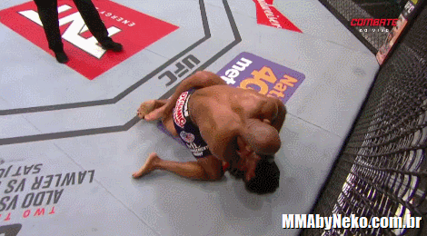 This gif shows Jose Aldo rock his opponent with an uppercut, then after easily defending a desperate takedown, Aldo spins to get behind his wounded prey, securing an underhook and controlling his opponent's left wrist while throwing punches under the victim's right arm and over top when he moves his arm lower to defend.